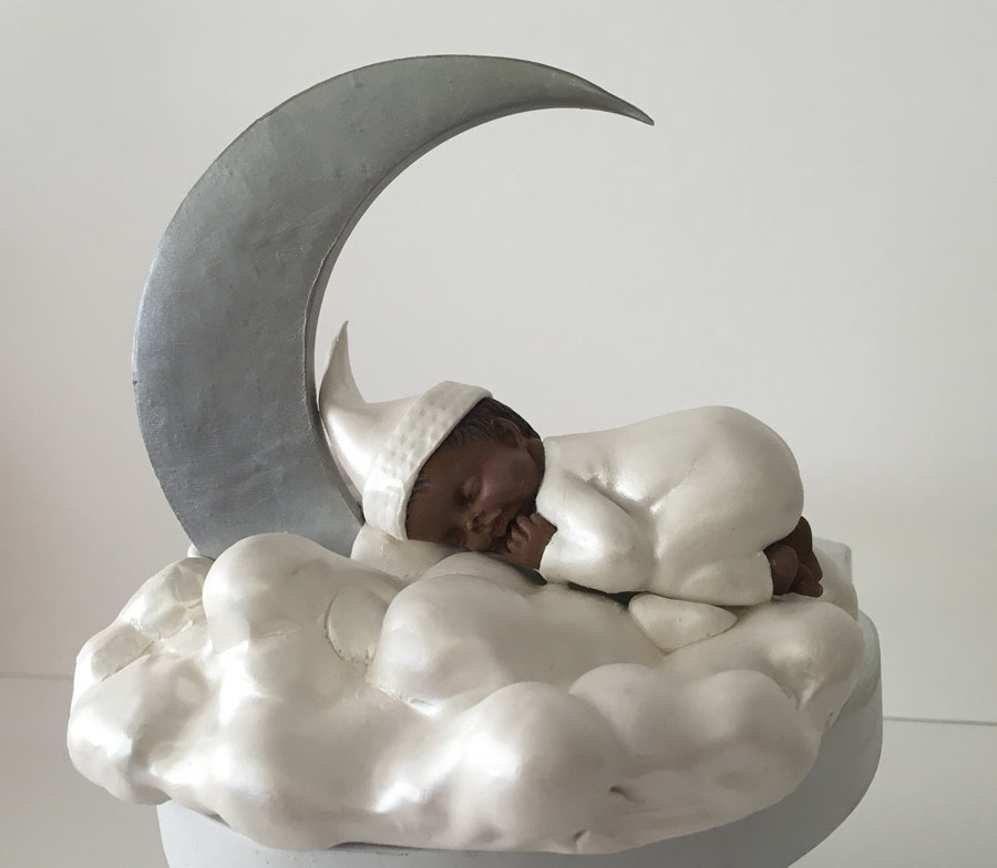 - The baby moon topper was created out of polymer clay to serve as a lasting memory.