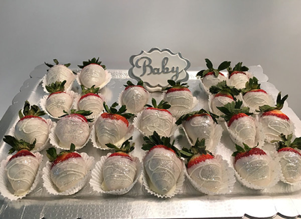 - Your baby celebration would not be complete without white chocolate covered strawberries.