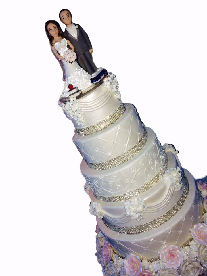 wedding_cake_with_clay_keepsake_toppers Published March 12, 2016 at 720 × 960 in Wedding Cake Tower with custom topper for teacher and bus driver